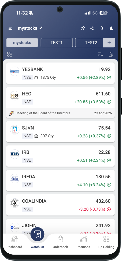 Create multiple watchlists to track your favorite stocks and monitor their performance.