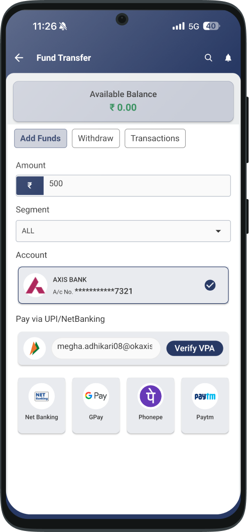 Add money to invest & withdraw quickly.