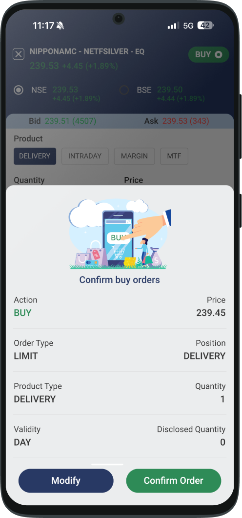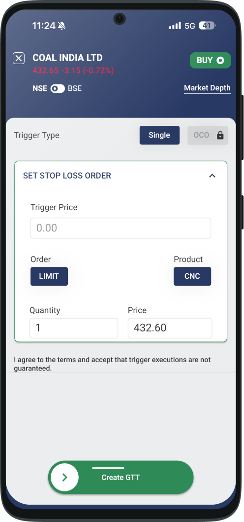 Place GTT orders with a validity of 1 year. When a stock hits your target price, a buy or sell order is placed automatically.